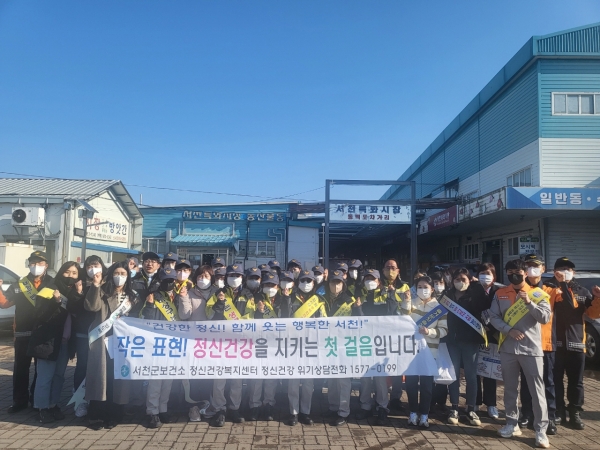 [충청뉴스큐] 서천군이 지난 11일 설 명절을 맞아 서천특화시장 일원에서 ‘생명존중 및 자살예방’ 캠페인을 전개했다.