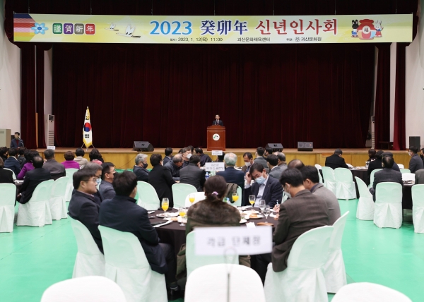 코로나19 여파로 3년 만에 맞이한 신년인사회는 괴산문화원이 주관해 송인헌 군수, 신송규 괴산군의회 의장, 박덕흠 국회의원, 이태훈 충북도의회 의원, 괴산군의회 의원, 기관단체장, 사회단체장, 기업체장 등 200여명이 초청됐다.