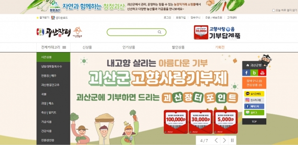 한편 괴산군은 답례품으로 군에서 운영하는 괴산장터 쿠폰을 지급해 기부자들에게 관내 생산되는 농·특산물과 가공식품 등을 다양하게 선택할 수 있는 기회를 부여하고 있다.