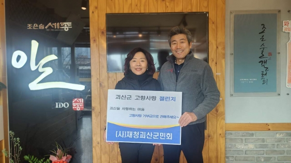 경기호 ㈔재청괴산군민회장은 지난 17일 100만원을 기부하며 ‘괴산을 사랑하는 마음, 고향사랑 기부금으로 전해주세요’라는 주제로 군민회 회원들이 함께 기부 동참 챌린지를 시작했다.