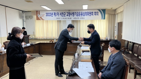 [충청뉴스큐] 서천군이 지난 25일 군청 상황실에서 ‘고향사랑기금운용심의위원회’위원 위촉식을 갖고 첫 회의를 개최했다.