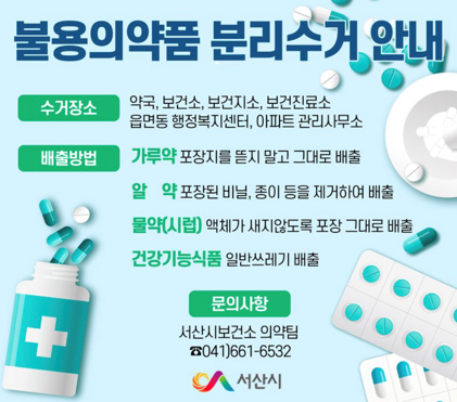 [충청뉴스큐] 충남 서산시는 코로나19 장기화로 인해 방치된 불용의약품이 증가함에 따라 올바른 불용의약품 분리배출 문화 정착을 위한 홍보에 나섰다.