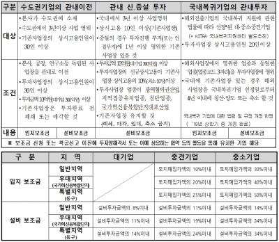 이 보조금은 수도권 기업의 이전, 관내 신·증설 투자 및 국내 복귀 기업에 대해 지방투자를 촉진하기 위해 투자금액의 일부를 정부와 지자체가 공동으로 지원하는 제도를 통해 마련됐다.