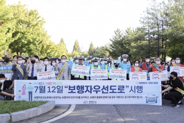 박상돈 천안시장은 “천안시 위상에 맞는 교통 안전도시를 조성할 수 있도록 대대적인 캠페인과 교육 등을 진행해 시민 안전의식 개선에 힘쓰겠다”며 “시민 여러분께 나와 내 가족 모두의 안전을 위한 교통법규·교통안전 수칙을 준수해 주시기를 간절히 당부한다”고 말했다.