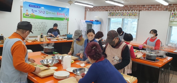 참여자는 관내 60세 이상 1인 가구 주민 10여명으로 함께 음식을 만들고 소통하는 시간을 가진다.