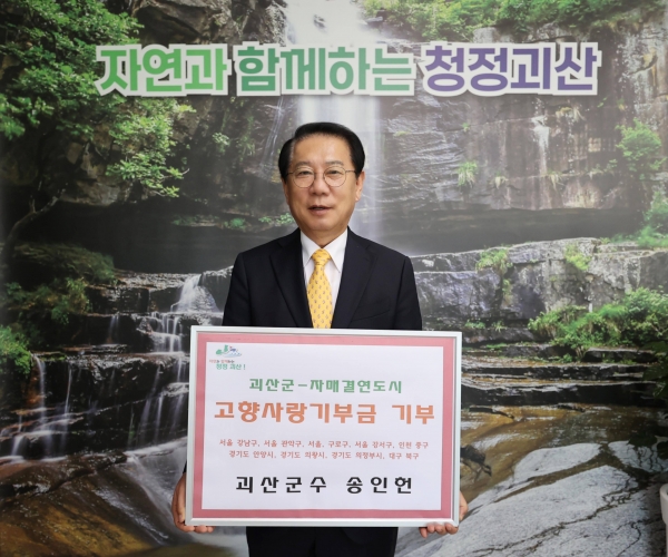 송인헌 괴산군수는 “올해부터 시행된 고향사랑기부제는 많은 분들의 관심과 적극적인 참여가 있어야 성공적으로 안착될 수 있다”며 “이번 고향사랑기부는 기부뿐만 아니라 자매결연도시를 응원할 수 있는 뜻깊은 의미를 가진다”고 말했다.
