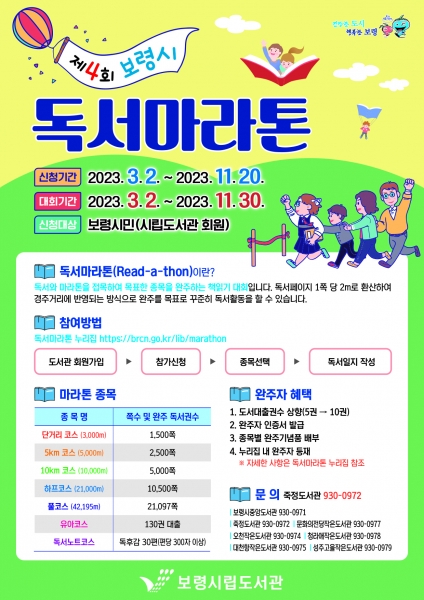 기타 자세한 사항은 보령시 독서마라톤 누리집 또는 보령시 문화교육과 도서관팀으로 문의하면 된다.