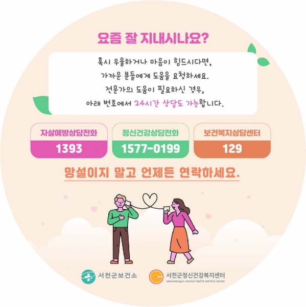 이문영 보건소장은 “자살 위험자가 상담이 필요할 경우 즉시 도움을 받을 수 있도록 자살 예방을 위한 환경을 조성하고 생명 존중 문화 사업을 확대해나가겠다”고 밝혔다.