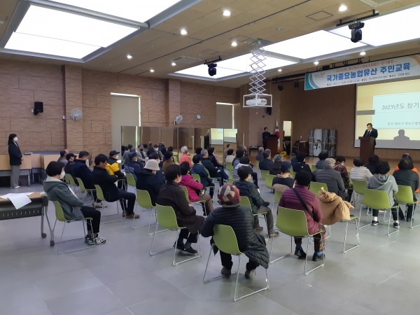 이 자리는 한산태모시조합 정기총회를 맞이해 지난해 11월 국가중요농업유산 제18호로 지정된 ‘한산모시 전통농업’에 대해 관련 종사자들에게 농업유산의 가치와 의미를 알리고 향후 진행될 각종 사업의 취지를 설명하기 위해 마련됐다.