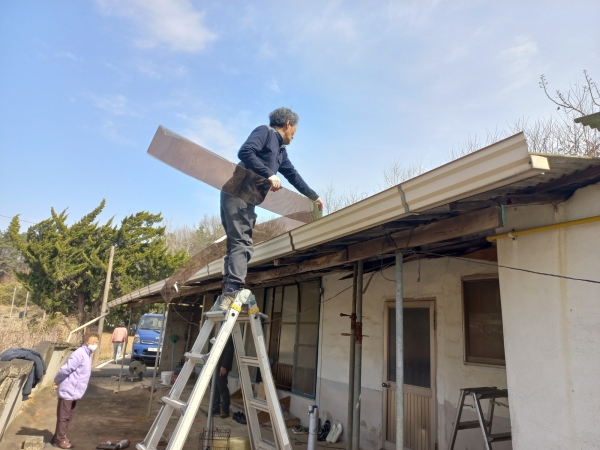 [충청뉴스큐] 서천군 기산면 막동리 나기채 씨가 지난 20일 지붕 수리로 재능기부를 실천해 주변을 훈훈하게 하고 있다.