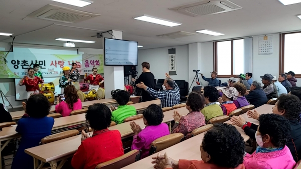 [충청뉴스큐] 지난 7일 오후 논산시 양촌면 분회에서 열린 ‘양촌면민을 위한 사랑의 나눔 음악회’가 지역 어르신들의 기분 좋은 웃음과 박수 속에 마무리됐다.