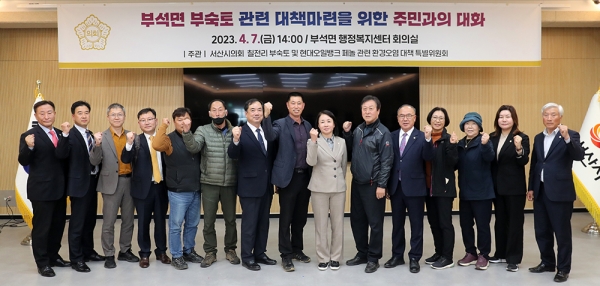 [충청뉴스큐] 서산시의회 칠전리 부숙토 및 현대오일뱅크 페놀 관련 환경오염대책특별위원회가 지난 7일 부석면 행정복지센터 회의실에서 부숙토 살포관련 대책마련을 위한 부석면 주민과의 대화를 개최했다.