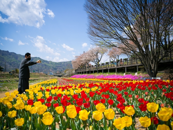 현재 이곳에 여섯 가지 색의 튤립과 꽃잔디 등이 꽃을 피워 아름다움을 뽐내고 있다.
