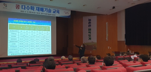 [충청뉴스큐] 당진시농업기술센터가 13일 농원관에서 콩 재배 농가 100여명을 대상으로 콩 다수확 재배 기술교육을 실시해 농업인들의 많은 관심을 모았다.