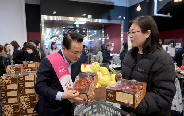 [충청뉴스큐] 논산시가 지난 18일 대전 도룡동에 위치한 로컬푸드광역직거래센터 파머스161 직매장에서 대대적인 방울토마토 소비촉진 행사를 개최했다.