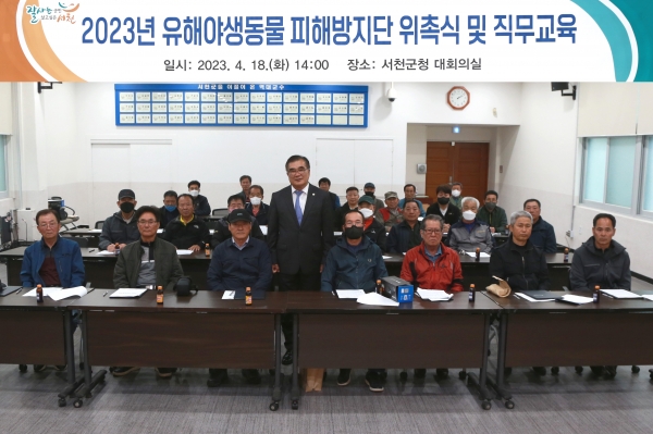[충청뉴스큐] 서천군이 지난 18일 유해 야생동물로 인한 농작물 피해를 예방하고자 ‘서천군 유해야생동물 피해방지단’ 위촉식을 갖고 본격적인 운영에 돌입한다.