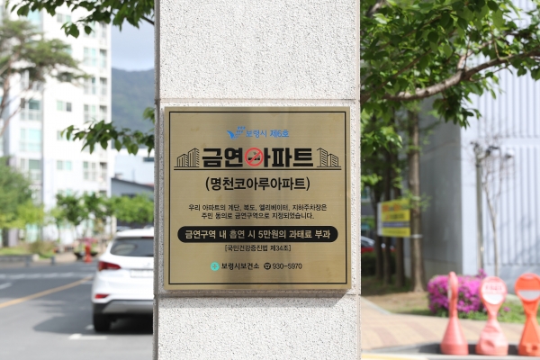 [충청뉴스큐] 보령시는 담배 연기 없는 깨끗한 주거환경 조성 및 지역주민의 간접흡연 피해 예방을 위해 ‘명천코아루아파트’를 보령시 제6호 공동주택 금연구역으로 지정했다.