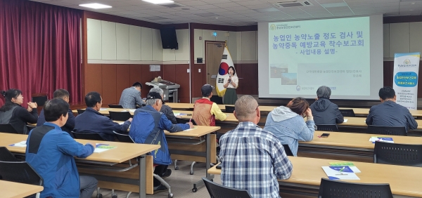 이 교육은 농약 중독 실태 파악과 개선으로 농업인들의 건강증진을 목적으로 추진되며 농약 노출 정도 검사와 안전교육, 안전 보호구 보급 등으로 이뤄진다.
