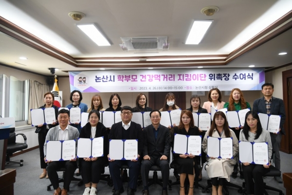 [충청뉴스큐] 논산시가 지난 26일 시청 상황실에서 ‘2023년 학부모 건강먹거리 지킴이단’위촉장 수여식을 개최했다.