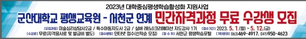 [충청뉴스큐] 서천군이 평생학습 프로그램 변화에 대응하면서 취업경쟁력 향상, 인력자원 육성 등을 위해 군산대학교와 연계한 대학중심 평생학습 활성화 지원사업을 진행한다.