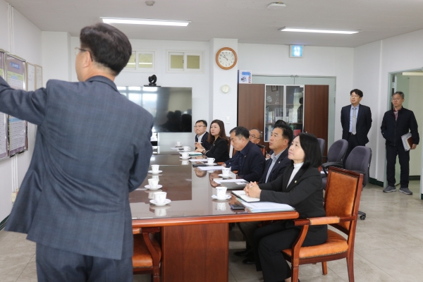 오전 회의는 현대오일뱅크 페놀과 부숙토 관련의 건으로 서산시 투자유치과장을 비롯해 양대동 하수처리장 소장, 대죽 폐수처리장 소장, 테크노밸리 폐수치리장 팀장이 참고인으로 참석해 현재까지의 진행 상황과 향후 계획 및 질의 응답 시간을 가졌다.