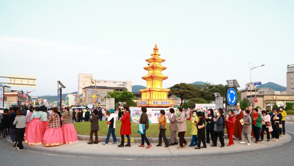 [충청뉴스큐] 청양지역 불자들과 주민들이 지난 7일 청양읍 소재 청양고 사거리에서 2567번째 부처님오신날을 기념하는 봉축탑 불빛을 밝혔다.