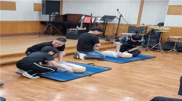 교육을 마친 A 학생은 “심폐소생술을 뽀뽀라고만 알고있던 제가 부끄러워요. 이제 누가 쓰러져있으면 망설이지 않고 심폐소생술해서 저도 TV 나오고 싶어요.”며 현장에 웃음을 자아냈다.