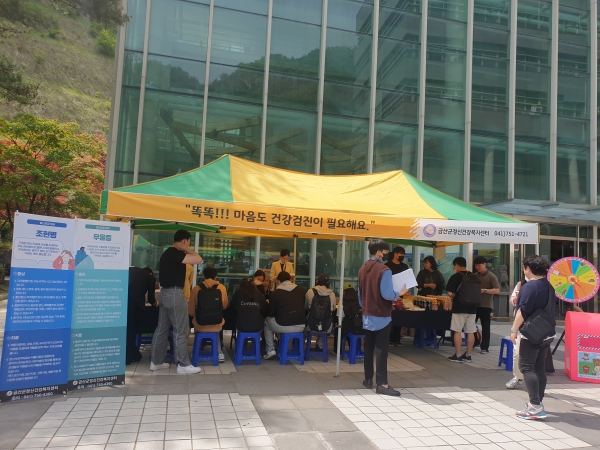 [충청뉴스큐] 금산군보건소는 지난 10일 중부대 JOB 콘서트 행사에서 찾아가는 심리지원 금산군정신건강복지센터 마음안심버스 홍보에 나섰다.