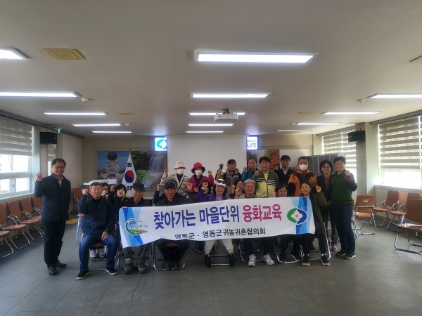 영동군은 해마다 귀농귀촌인과 원주민간 갈등 발생 소지를 사전에 차단하기 위해 마을을 대상으로 서로 소통하고 상생하는 분위기 조성을 위한 융화 교육을 실시하고 있다.