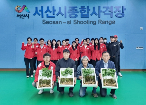 [충청뉴스큐] 충남 서산시는 심마니 곽중원 씨가 지난 22일 서산시종합사격장을 찾아 서산시 직장운동경기부 선수단 응원을 위해 직접 기른 산양삼 21주를 기증했다고 밝혔다.