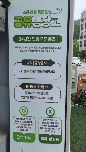 공유냉장고는 이웃과 음식 나눔을 통해 먹거리 사각지대를 해소하고 버려지는 음식물을 줄여 탄소배출 감소에도 보탬을 주는 사업이다.