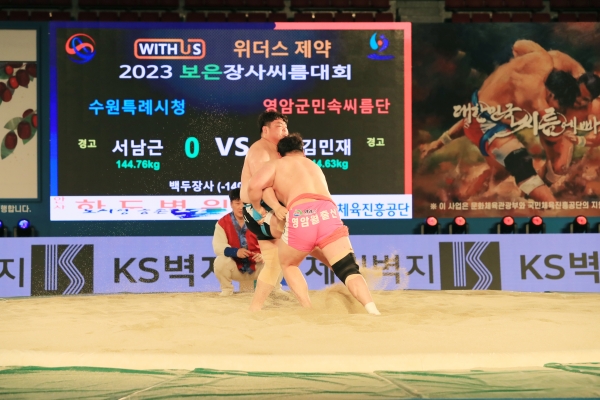 [충청뉴스큐] 보은군은 대한씨름협회가 주최하고 보은군씨름협회이 주관하는‘2023 민속씨름 보은장사씨름대회’가 성황리에 막을 내렸다고 24일 밝혔다.