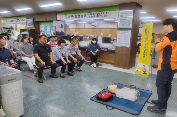 이번 교육은 민원인들과 가장 많이 대면하는 민원실에서 응급상황에 처했을 때 신속한 심폐소생술을 통해 민원인들의 생명을 보호하고 직원들의 대처 능력을 키우고자 마련됐다.