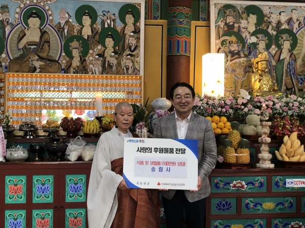 [충청뉴스큐] 대한불교조계종 송림사는 부처님오신날을 맞아 지난 27일 행복나눔마켓에 100만원 상당의 후원물품을 기탁했다.