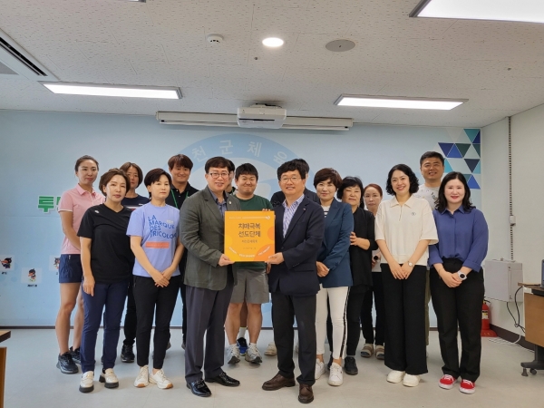 [충청뉴스큐] 서천군이 31일 치매 친화적 사회 조성에 동참하는 서천군체육회를 제1호 치매 극복 선도단체로 지정하고 현판을 전달했다.