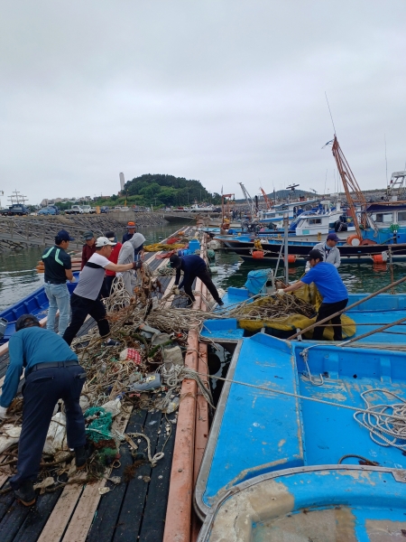 이날 서면행정복지센터 직원, 김양식생산자협의회, 서부수협, 관내 어촌계, 주민 등 80여명이 참여한 가운데 방파제 밑동에 부착된 쓰레기를 처리하고 선박 및 크레인을 이용해 바닷속 폐어구를 중점 수거했다.