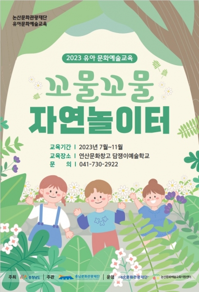 [충청뉴스큐] 논산문화관광재단이 자연과 환경, 맛을 주제로 한 친환경 통합예술교육 프로그램 ‘꼬물꼬물 자연놀이터’에 참여할 유아 교육기관을 모집한다.