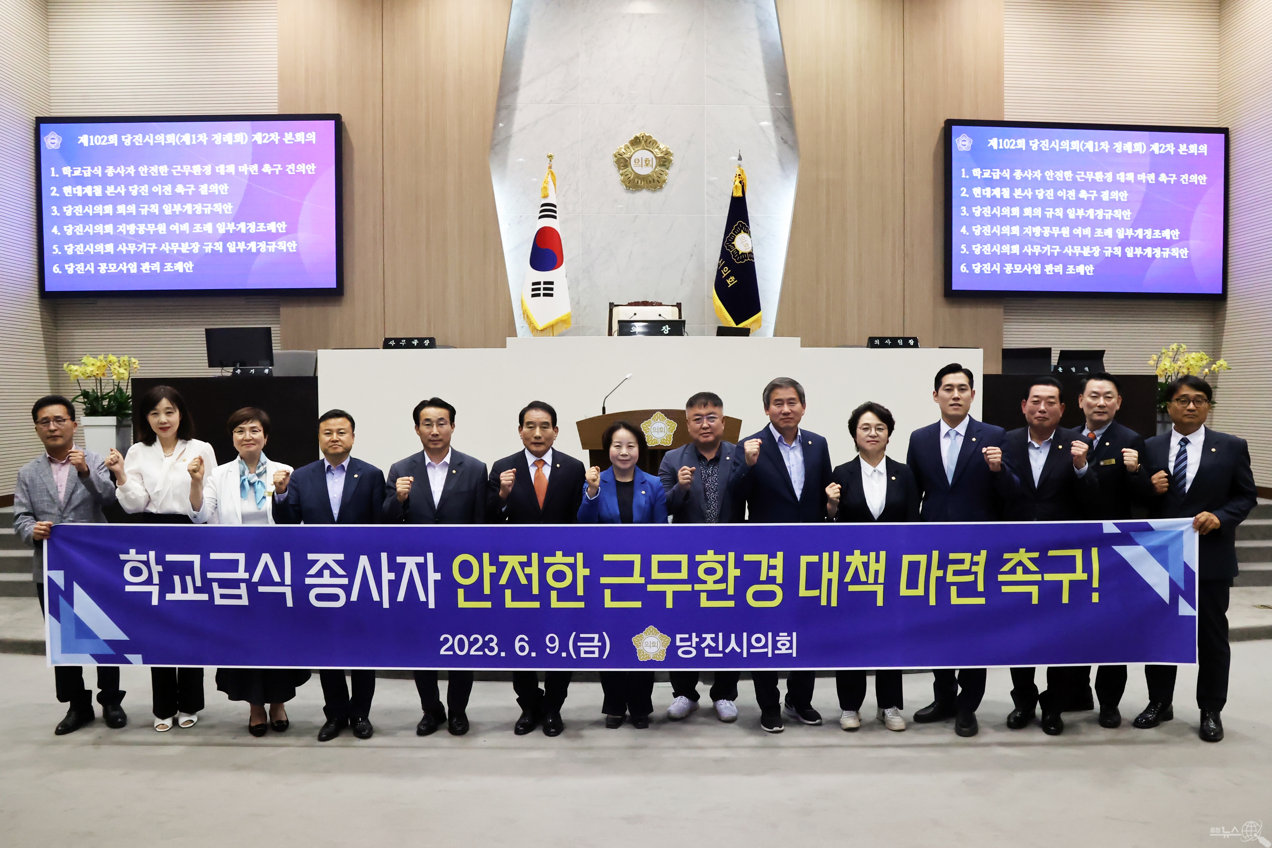당진시의회(의장 김덕주)가 지난 9일 제102회 정례회 제2차 본회의에서 ‘학교급식 종사자 안전한 근무환경 대책 마련 촉구 건의안’을 채택했다고 밝혔다.