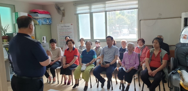 시는 각 가정에서 흔히 발생할 수 있는 전기, 가스 등 화재 예방 방법에 대해 교육을 진행하고 단지 내 무더위 쉼터와 냉방설비 등을 점검했다.