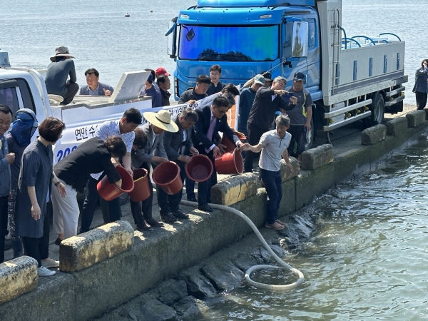 군은 어업환경의 변화로 연안 수산자원이 점차 감소해 생계를 위협받게 된 어업인들의 소득과 연안 수산자원을 보전하고자 총 1억 5000여만원을 투입해 수산종자 방류 행사를 진행했다.