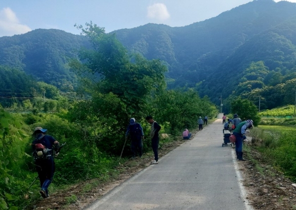 이날 백현리 마을 주민 20명은 이른 아침부터 도로변과 길가에 무단투기 및 방치된 쓰레기를 수거하고 마을 입구 공터에 해바라기, 코스모스 등을 심어 꽃길을 조성하는 등 꽃길이 예쁜 마을을 만들기 위해 구슬땀을 흘렸다.