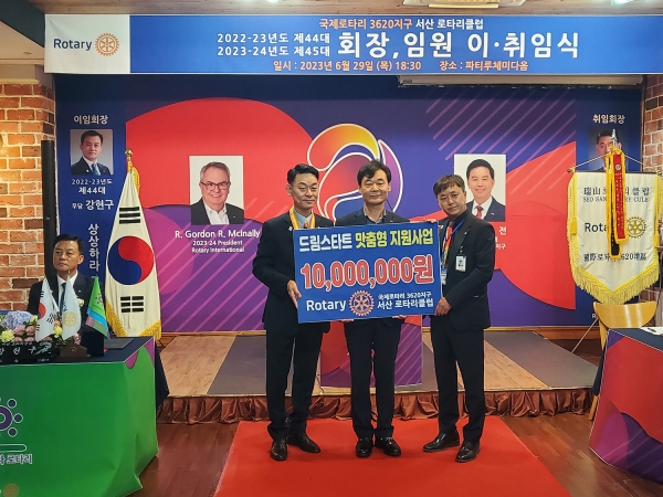 [충청뉴스큐] 충남 서산시는 지난 29일 서산시 파티루체미다움에서 열린 국제로타리 3620지구 서산로타리클럽 신임 회장 및 임원의 취임식에서 서산시 드림스타트 취약계층 아동을 위한 후원금 1천만원을 전달했다고 밝혔다.