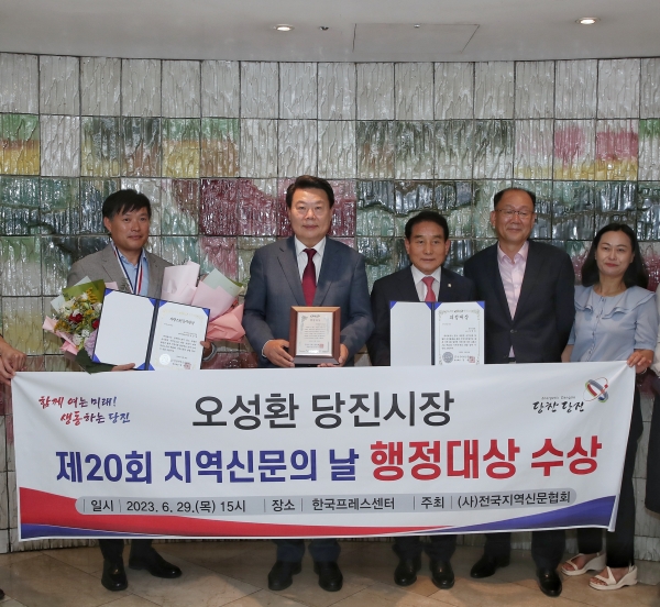 [충청뉴스큐] 오성환 당진시장이 29일 서울 중구 프레스센터에서 제20회 지역신문의 날을 맞이해 열린 기념식에서 행정대상을 수상했다.