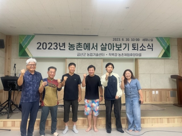 [충청뉴스큐] 금산군은 지난 6월 30일 부리면 소재 적벽강농촌체험휴양마을 다목적강당에서 농촌에서 미리 살아보기 프로그램 퇴소식을 개최했다.