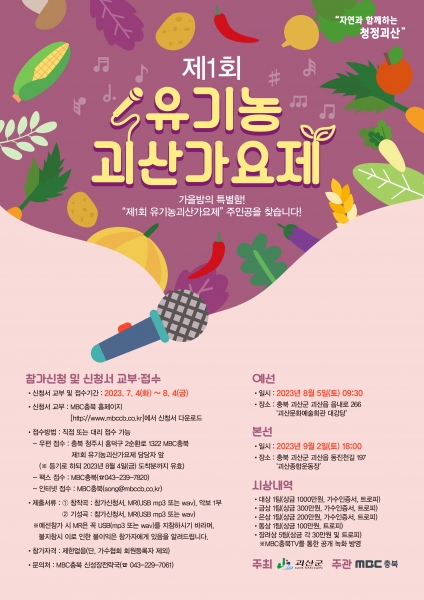 [충청뉴스큐] 충북 괴산군은 오는 9월 2일 개최하는 ‘제1회 유기농괴산가요제’의 참가자를 모집한다고 밝혔다.
