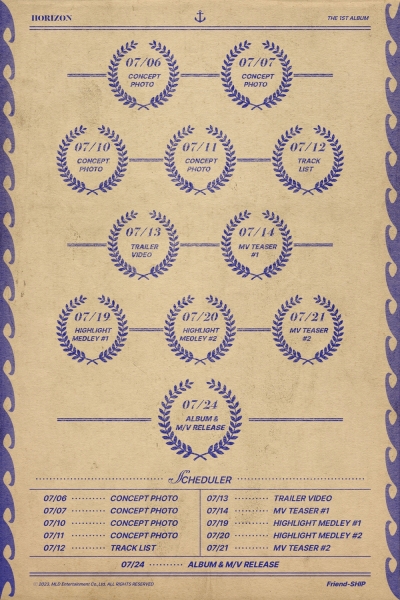 지난 5일 오후 호라이즌 공식 SNS 채널을 통해 첫 번째 정규앨범 ‘Friend-SHIP’의 스케줄러가 공개됐다.