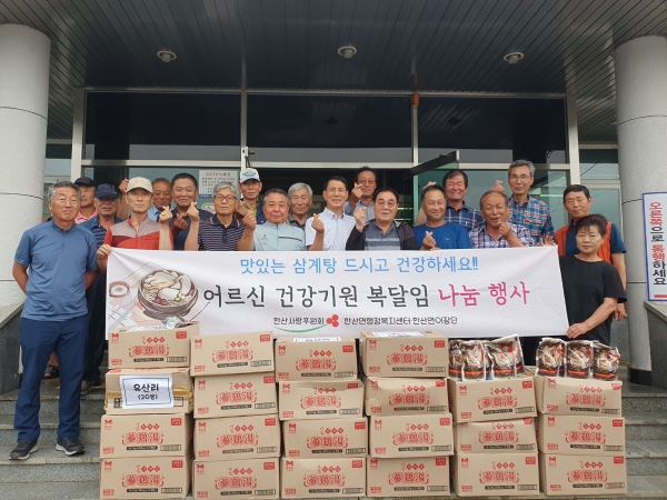 이날 행사는 무더위로 기력이 약해지기 쉬운 어르신들이 여름을 건강하게 보내시길 바라는 마음으로 준비됐으며 봉사자들은 어르신에게 직접 삼계탕을 전달하며 안부를 확인했다.