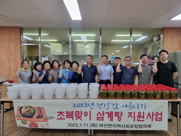 [충청뉴스큐] 서천군 마산면지역사회보장협의체가 지난 11일 초복을 맞아 어르신들이 건강하게 여름을 보내시길 바라는 마음을 담은 ‘초복 맞이 삼계탕 지원사업’을 추진했다.