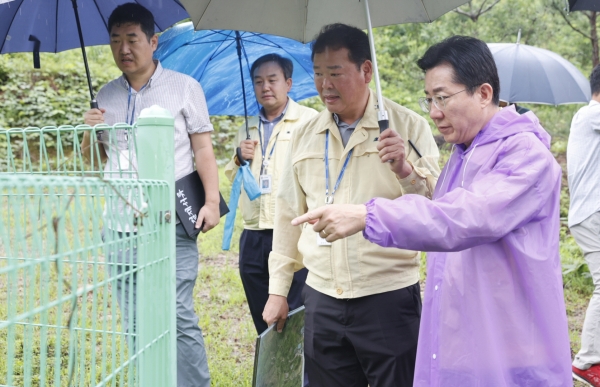 박 시장은 우선 2020년 산사태 발생지를 방문해 복구 현장을 둘러보고 지반 상태와 예찰 주기, 경보 시스템 등을 두루 확인했다.