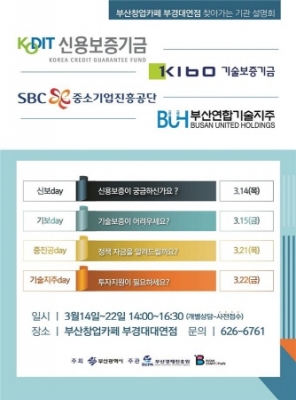 이번 설명회는 창업가들의 접근성이 좋은 부산창업카페 부경대 대연점에서 개최되며, 신용보증기금, 기술보증기금, 중소기업진흥공단, 부산연합기술지주가 참여한다.